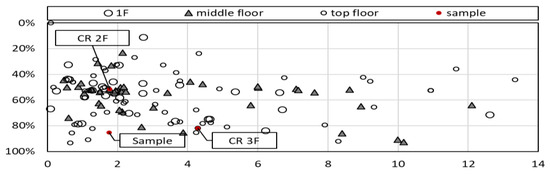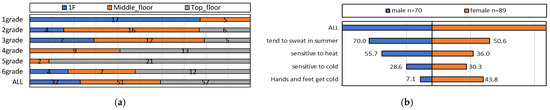 Figure 1a. When classified into first floor, intermediate floors, and top floor categories, lower grade levels were allocated to lower floors, while higher grade levels were positioned on upper floors, with the top floor classrooms accounting for 41% of the total.