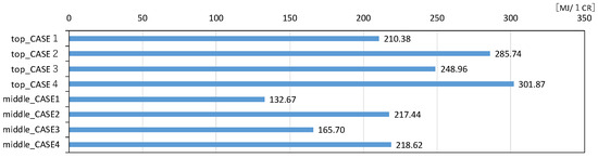 3] per classroom for four different cases (Case 1 to Case 4) conducted in Q Elementary School, categorized into upper and intermediate floors. Cases 1 and 3 represent scenarios where ventilation is ensured, while Cases 2 and 4 are calculated based on the average values derived from the teacher-reported data in
