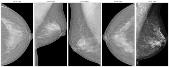With the RSNA Mammography Data, a deep learning approach was built and evaluated for breast cancer detection and diagnosis [3]. The RSNA Mammography Data are a large-scale collection of screening mammograms from Australia and the U.S. with detailed labels, radiologists’ evaluations, and follow-up pathology results for suspected malignancies. The RSNA is a nonprofit organization that represents 31 radiology institutions in 145 different nations. Through education, research, and technological innovation programs, the RSNA strives to improve the quality of health care for patients [4]. The RSNA Mammography Data cover various mammography images with variable quality and appearance due to different factors such as acquisition parameters, compression levels, and breast density. The Breast Imaging Reporting and Data System (BI-RADS) lexicon is the main communication tool in mammography reports in most nations with established breast cancer screening programs [5]. The BI-RADS lexicon categorizes breast imaging findings into seven categories, from BI-RADS 0 (incomplete) to BI-RADS 6 (known biopsy-proven malignancy) [4]. The RSNA Mammography Data also provide information on breast density, lesion type, lesion size, lesion location, and histologic diagnosis. Figure 1 shows an example of images from the dataset.
