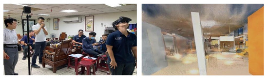 For evaluation purposes, we laser-scanned a daycare center to build a point cloud 3D digital model and added a dynamic fire smoke simulation effect into the virtual-reality scenery. Then, we invited the firefighters of the Fire Bureau of Taichung City Government for a test. The simulation revealed that even professional firefighters start to become nervous when they are in an unfamiliar and smoky space where they cannot see clearly. It takes them more time to find the emergency exit (Figure 1).