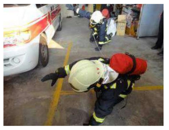 Firefighters are practicing moving forward in a low posture [7].