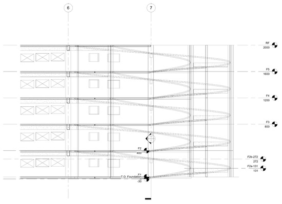 For an irregular structure system such as a ramp or a non-rectangular building, the designer uses a 2D concept layout structure system. When an irregular 3D shape causes a space to be blocked by beams and columns, the Revit BIM 2021 program is used to set up building models. Its most important function is its ramp making tool, as shown in Figure 1. Users can use the function to model a building-floor-height ramp system. Using this function, the ramp floor support beam system locations are defined.