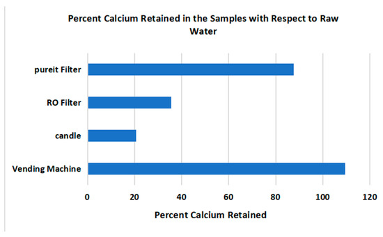 Figure 10. Percentage of calcium concentration compared to raw water.