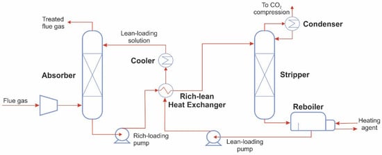 Flow diagram of a basic chemical absorption for CO2 capture (Modified from []).
