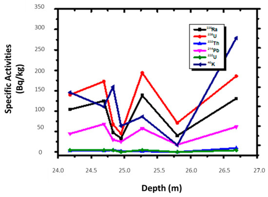 - Khattab, M.R.; Tawfic, A.F.; Omar, A.M. Uranium-series disequilibrium as a tool for tracing uranium accumulation zone in altered granite rocks. J. Environ. Anal. Chem. 2021, 101, 1750–1760. [Google Scholar] [CrossRef]
