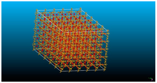 ReaxFF accurately models bond breaking and formation, making it suitable for diverse applications, ranging from materials science to catalysis, and enables efficient, large-scale simulations, aiding in the understanding and design of materials and chemical processes. The MD timestep used was 0.5 fs, and periodic boundary conditions were used. The density of the system was maintained at 2.61 g/cm−3. Amorphous silica was created in LAMMPS [6] through an annealing procedure applied to crystalline silica. The development of the amorphous silica model involved a sequence of three steps: first, a heating phase in the NVT (a canonical ensemble), followed by cooling in the NVT ensemble and, finally, a relaxation phase in the NPT (an isothermal–isobaric ensemble).