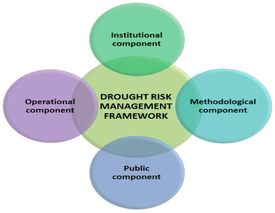 - Institutional component—The institutional framework should include water, meteorology, agriculture, environment, and socioeconomic institutions to develop integrated drought risk management systems.