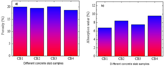 (a) Porosity and (b) absorption water for different concrete slab samples.