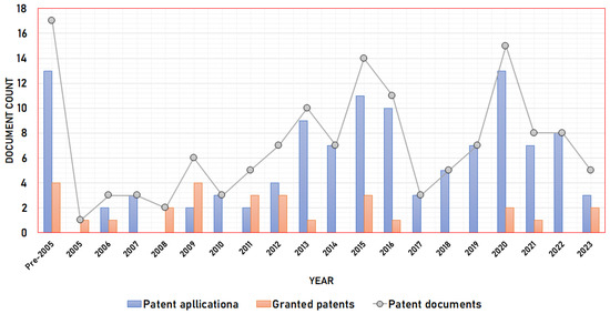 China is the jurisdiction with the most patents in this area (i.e., 66 patent documents), followed by the United States, Europe’s jurisdiction, and the Patent Cooperation Treaty (PCT) international system. This system, overseen by the World Intellectual Property Organization (WIPO), enables inventors to obtain protection for their inventions in many countries worldwide by filing a single patent application [19].