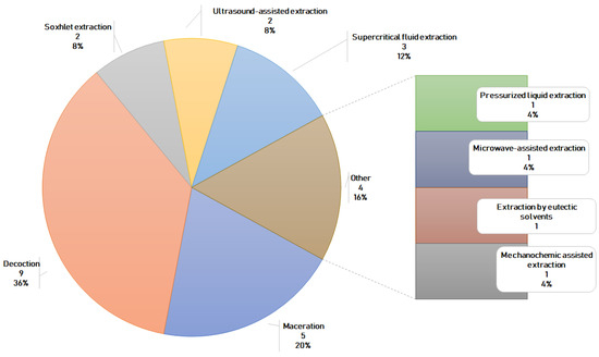 The extraction methods cited and used in the studied granted patents (Supplementary Materials, Table S1).