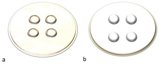 Scheme of Petri dishes with the cutouts (a) and filter paper discs (b) for testing the solutions.