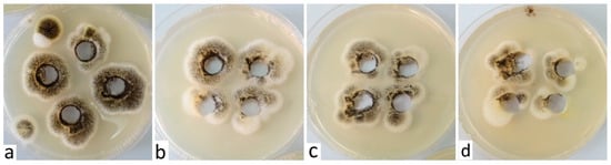 It would be more than welcome and at the same time financially advantageous if the above-mentioned solutions, in addition to being insecticidal, also prove fungicidal effects. The species Cladosporium cladosporioides and Alternaria infectoria grew very slowly in the presence of DPB, and individual colonies appeared gradually on the culture medium, but also around the cutouts where the tested solution was applied. In addition, in close proximity to the cutouts, we noticed a relatively dense growth of the Aspergillus niger species, probably caused by air contamination. Despite the fact that we did not test the species Aspergillus niger, its growth around the cutouts was more or less identical compared to the growth of the other tested species, and more or less directly proportional to the concentration of the test solution used; we always recorded the best growth at the highest concentration of 1:10 (Figure 2).