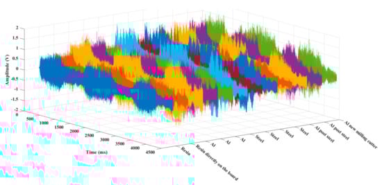 For the study, a machining tool, machine tool, acoustic frequency pickup sensor, carbon plate, and three devices for fixing the carbon plates were used, made of resin, steel, and aluminum. The data acquisition system was composed of a wireless piezoelectric AE sensor, which was responsible for detecting information relating to the condition of the tool and which was expressed through electrical signals digitized on a computer using an acquisition board at sampling rates of the order of 250 kHz. In total, 18 tests were carried out, but only from the seventh signal onwards was it possible to capture them correctly, resulting in 12 useful signals. The milling process diagram is shown in