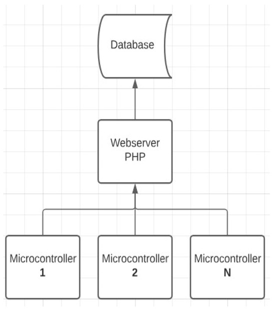 In conclusion, the third part of the project focuses on creating clients that facilitate interconnection between the database server and the microcontrollers. By bridging centralized data storage and distributed processing devices, the clients play a crucial role in the integrity and smooth operation of the project as a whole. The diagram shown in Figure 2 illustrates communication between the entities within the system. The only part with direct access to the Database Management System (DBMS) is the PHP Web Server, which serves as the core of the system. This is important to ensure the integrity of the information stored in the database and prevent SQL injection vulnerabilities.