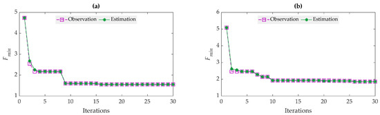 where denotes the cross-validation mean-squared-error (MSE) between observation and estimation; this is achieved iteratively. At each iteration, the objective function in Equation (1) yields a logarithmic transformed validation loss-value computed for the regression model, along with the relevant optimal set of hyperparameters. As mentioned, the BHO not only handle this function, but also incorporates a probability distribution model to be updated at each iteration. BHO thus defines an acquisition function and the next set of hyperparameters. Hence, it can be considered to deliver a posterior probability distribution model for each hyperparameter. The best hyperparameter values can be selected after reaching a good match between real and predicted data.