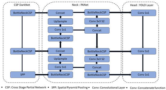 The neck network employs the FPN and PAN pyramid topologies. The FPN structure communicates contextual information characteristics from top to bottom feature maps. At the same time, the PAN structure transmits strong localization features from lower to higher feature maps. The above two structures collaborate to boost detection capabilities by fortifying features gathered from distinct network levels in backbone fusion. Finally, the head output is primarily used as a final detection step to predict targets of various sizes on feature maps.