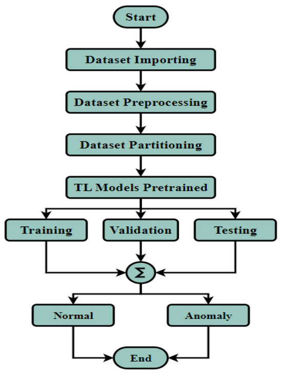 Figure 3 displays the overall steps taken in this research’s experiments. The initial stage involved importing a dataset into Matlab. The images were preprocessed by resizing them to comply with the input size requirements of pre-trained CNNs programmed to classify images as either normal or anomalous. The dataset contained two folders, one with normal images and the other with anomalous images. It was split into 70% for training and 30% for testing and validation. The dataset included 20,000 images, half normal and the other half anomalous. To ensure the training process’s accuracy, a 5-fold cross-validation technique was employed, and the expected output of each model was either normal, indicating no attack, or anomalous, indicating that an attack had occurred.