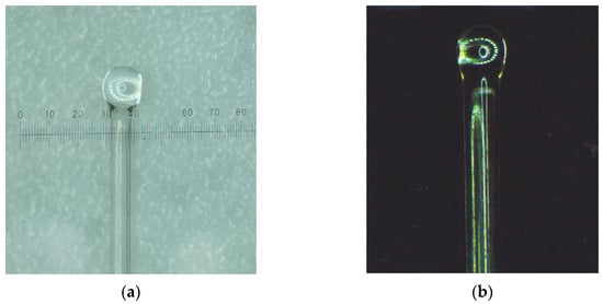 The obtained microsphere samples: (a) microsphere with a diameter of 380 μm; (b) microsphere with a diameter of 200 μm.