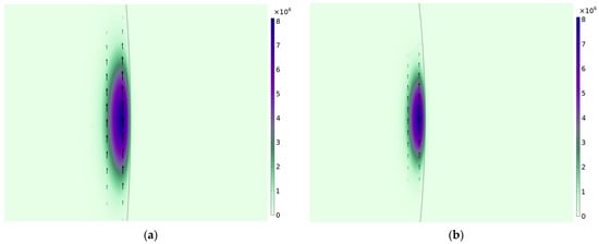Fundamental mode localization: (a) microsphere in air; (b) microsphere in water.