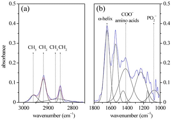 | Stretching COO− of amino acids | 43 | 17 ± 8 | 1417 ± 8 | 26 | 12 ± 7 | 1415 ± 3 |