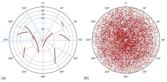 Satellite azimuth and zenith angle plot (sky-plot) during antenna calibration at LMMT: (a) topocentric frame (TF); (b) antenna frame (AF).