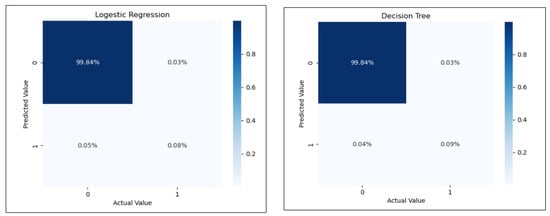 Several assessment criteria, including accuracy, recall, precision, and the F1 score, were utilized for evaluating the performance of the models for binary classification tasks. Accuracy evaluates overall correctness, precision represents the percentage of genuine positives among true positives, and recall assesses the proportion of correctly identified true positives. The F1 score provides a balanced average between precision and recall. A comprehensive examination of these measures was conducted to formulate the performance of the different models and identify their advantages and disadvantages. Cross-validation and hypothesis testing are examples of statistical tests that are used to see if one model performs significantly better than the others. Figure 1 below displays the confusion matrix for logistic regression and decision tree, while Figure 2 illustrates the training and validation accuracy for the artificial neural network (ANN), and Table 2 below shows the comparison of different models against different performance matrices.