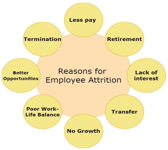 - Ponnuru, S.; Merugumala, G.; Padigala, S.; Vanga, R.; Kantapalli, B. Employee attrition prediction using logistic regression. Int. J. Res. Appl. Sci. Eng. Technol. 2020, 8, 2871–2875. [Google Scholar] [CrossRef]