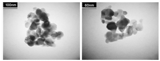 Transmittance Electron Microscopy (TEM) images of ZnO nanoparticles.