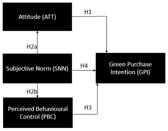 Available literature shows that TPB has proved to be extremely useful in understanding pro-environmental behavior among the younger generation [18]. According to one report, 63% of young Indians traveled four times in the first six months of 2016. Despite this, in India, research on consumer purchasing intentions and behavior in environmentally friendly hotels is still in its infancy [1]. This study will explore the factors that drive millennial intention towards visiting green hotels by applying TPB. The findings of several researchers confirm the TPB’s relevance in measuring the intention of millennials to visit green hotels [1,17]. The following hypotheses (Figure 1) can be advanced in light of the debate above: