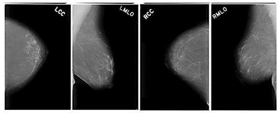 We have utilized 7026 images from the dataset to teach the framework, and another 2342 for evaluation. The performance parameters of the model are evaluated and depicted in the following formulae. The LCC (Left Craniocaudal), LMLO (Left Mediolateral Oblique), RCC (Right Craniocaudal) and RMLO (Right Mediolateral Oblique) are clearly shown in above Figure 6.