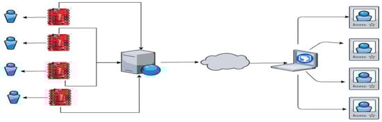 A medicine reminder mechanism was used to integrate the patient data collected onsite using vital motes [] and send it to hospitals using the cellular network. Vital motes are instruments that capture a patient’s vital signs and relay them for medication. Most of these systems, however, are limited to data for single patients. On the other hand, the aggregation of data for multiple patients assessed in [,,] was limited to internal use either on-site or in hospital triage rooms. A web portal was designed to enable registered users to obtain vital statistics about the overall scenario of disaster management. Earlier, the concept of real-time wireless transmission of patient medical data was introduced, and several systems for this purpose have been developed. For multiple patients, Code Blue sensors [] may be used to aggregate information on vital signs, including temperature, blood pressure, levels of SpO2 saturation, and pulse rate.