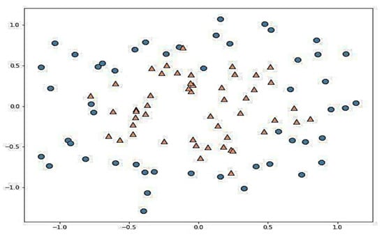 Random data points (two types of classes are symbolized by Triangles and Circles).