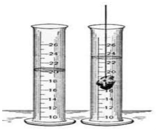 The Archimedes principle was used to determine the density of the composite specimen (Figure 4). The fluid used for the immersion of the composite specimen was distilled water maintained at room temperature, and a precision digital weighing balance was used to find the mass (Figure 5). Readings of the measuring jar before and after the immersion of specimen were taken and their difference was calculated. The mass of the specimen divided by this difference will give the density of the specimen [9,10].