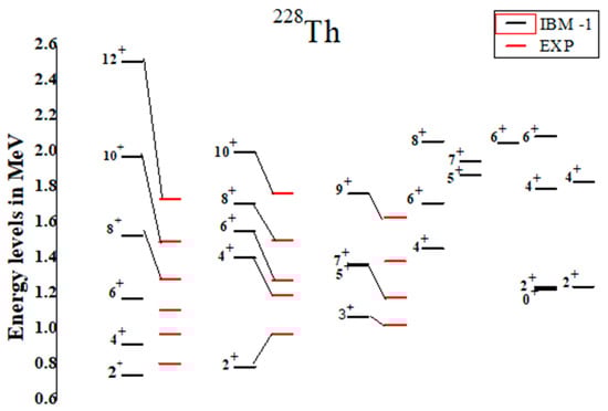 228Th isotope, it contains practical levels for the ground band, the beta band, and the gamma band as