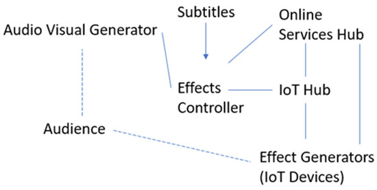 As it can be seen in Figure 1, the effect generators are connected with the ‘effects controller’ via an online service hub or an IoT hub. The controller will read the subtitles to know which effect should be played. This process is explained in detail in Section 4.