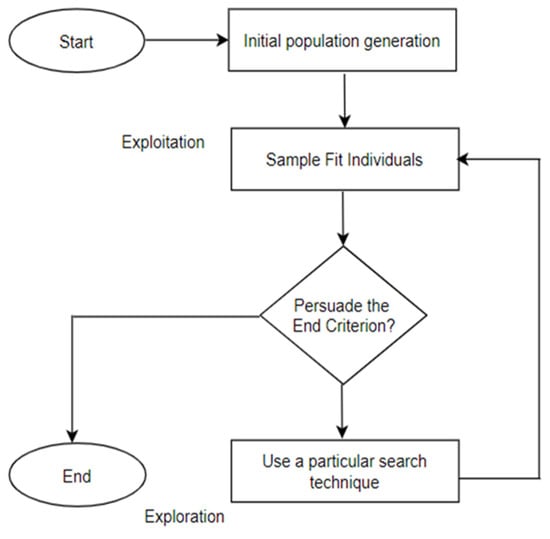 A metaheuristic seeks to maximize efficiency by exploring the search space to find near-optimal solutions. They are based on a strategy to drive the search process. The strategy can take inspiration from any natural or artificial system under observation. This can come from as diverse sources as the metallurgical process of annealing to the foraging behavior of ants. Defining a metaheuristic around a search strategy requires us to pursue scientific and engineering goals. The scientific goal is to model the mechanism behind an inspiration like a swarm of ants. The engineering goal is to design systems that can solve practical problems. While it is impractical to define a generic framework, we can discuss some defining characteristics. Finding the ideal balance between exploration and exploitation is a crucial aspect of any metaheuristic strategy. Exploration consists of exploring the entire feasible region as much as possible to evade suboptimal solutions. Exploitation involves exploring the surrounding area of a promising region to find the ideal solution. Figure 2 illustrates the exploitation and exploration flowchart.