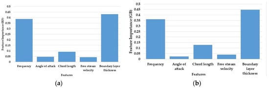 The relative importance of all five features is determined using both RF and GB models, yielding similar results as shown in Figure 7a,b. Frequency and boundary layer thickness are the topmost influential features, and the other three features, although individually less critical, contribute to the overall predictive performance.
