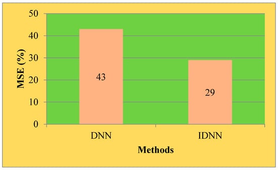 y-axis, the MSE values are listed. The method including the DNN algorithm provides higher MSEs, whereas the proposed IDNN algorithm yields reduced MSEs for this particular setup. Hence, it can be concluded from the suggested IDNN results that it improves hybrid energy system performances.