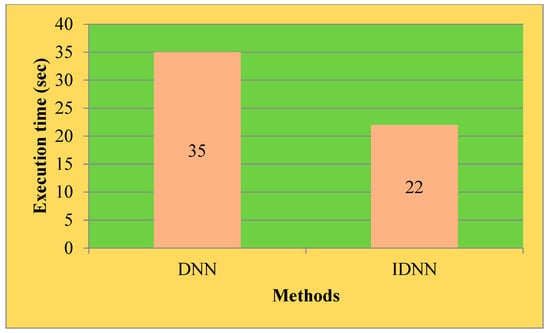 y-axis. The existing DNN technique had increased execution time, while the proposed IDNN algorithm had reduced execution time for the provided PV/wind/battery-based setup. Therefore, it can be concluded from the result that the proposed IDNN can improve performance.