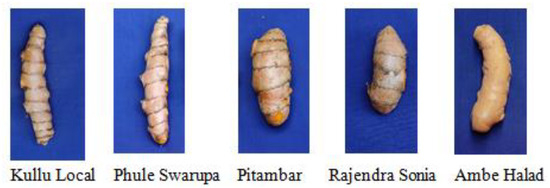 The automated identification and classification of agricultural products is an important process in the area of agricultural automation [1]. India has produced and supplied a wide variety of premium-quality spices to the entire world since ancient times, and hence, it is known as the ‘Spice Bowl of the World’ [2]. India contributes 75% of the production of whole spices in the world [3,4]. Turmeric is one of the important cash crops of India, and is immensely tolerant to a variety of environmental changes, including high temperatures and moderate drought. Turmeric cultivation is extremely profitable to farmers as they can obtain a high yield by selecting pure-variety and good-quality seeds. But visual inspection for variety identification and quality assessment needs human experts, and is a time-consuming process with subjective results [4]. Hence, it requires automation in turmeric rhizome identification that can be used during harvest for varietal identification and during post-harvest for quality assessment [5]. The challenges for the automated identification of turmeric rhizomes are the similarity in color, shape and variation among the same category of turmeric, and the availability of large datasets, which is a major issue.