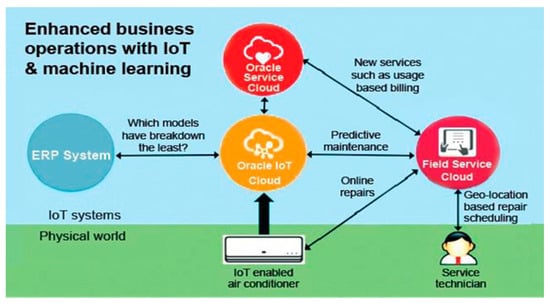 IoT technology is being used by Cisco, Microsoft, Google, IBM, Oracle, and SAP to create new software systems and hardware that will make our surroundings smarter. As Industry 4.0 is put into place, IoT technology will change the way factories work []. Microsoft Azure is a tool for completing work in the cloud []. Joseph Sirosh, who is the Corporate Vice President of Machine Learning at Microsoft, says that the IoT creates huge amounts of data every day from many sources. Scott Hanselman, the Senior Program Manager for Microsoft Azure, recently showed how the platform can easily connect many different parts and make machine learning easier for IoT applications []. IBM Watson focuses on IoT cognitive computing [,]. Google’s open-source machine learning (ML) platform TensorFlow (TF) is notable []. Recent advances in Amazon Web Services (AWS) IoT show the importance of machine learning (ML) in the IoT. AWS IoT was linked with AML in early 2016 [].