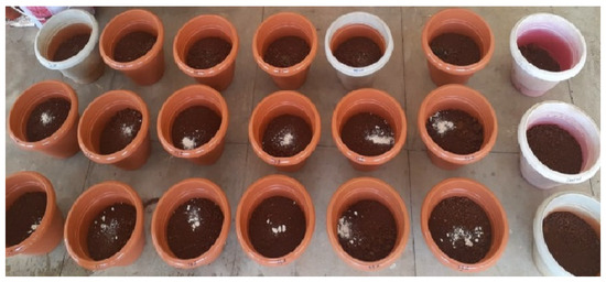 The proposed study was conducted over six months. After fertilizing the soil, 10 Vigna radiata seeds were placed in each pot, and the growth of each seed was tracked. According to Moerman et al.’s 2007 research, calcium ions (Ca2+) might improve the elimination of phosphorus by precipitating Ca3(PO4)2. In the meantime, a lot of Ca3(PO4)2 powder readily exits with the wastewater, lowering the wastewater quality. The three main feeding sequences for struvite precipitates were the pH, Mg2+, and PO43−. The pH decreased during the experiment, going from 9 to 6. The wastewater had conductivity and alkalinity that were both rather low. As shown in Figure 4, the pot trials were conducted in accordance with the standards of the Tamil Nadu Agricultural University.