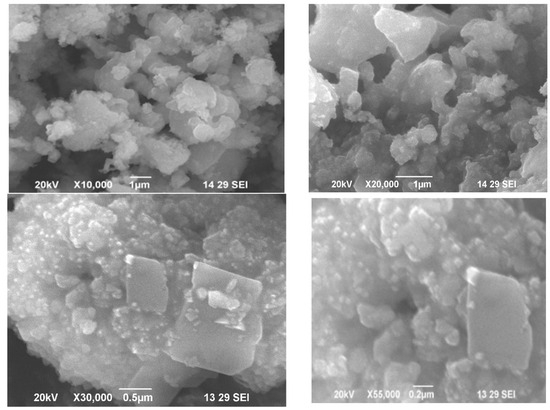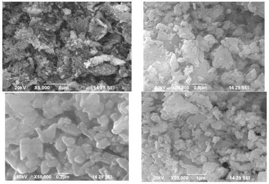Struvite’s SEM pictures with a molar ratio of PO43−:Mg2+:NH4+ = 1:1.5:2.