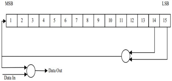 Coding speed may be improved by avoiding extended sequences of ones and zeros in a random sequence, and by randomizing the input data [6]. A 15-stage shift register with XOR gates in a feedback arrangement is used to eliminate mistakes, as depicted in Figure 1. Figure 2 shows the PRB generator for randomization.