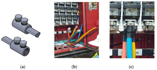 The solution implemented is the design of a special MCB connector with Al alloy. The connector head was specially machined for MCB terminals with reduced contact resistance (Figure 6).