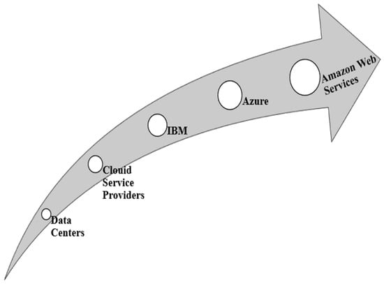 Data center organizations are expected to handle various distinct subjects connected with the data community. The organization of an actual data center office might integrate commitments connected with the office’s veritable inheritance, utilities, reputation, and staff. Data center features integrate equipment assets and program approval and release organization [,,]. A data center’s structural organization lies at the point of intersection of IT and office organization and is consistently satisfied by paying attention to data focus execution to upgrade essentialness, equipment, and floor use. The data community provides specific organization services to an association and, accordingly, it also provides services to the end clients of the association. Data center organization integrates the everyday structures and organizational systems provided by a data center []. Figure 2 explains the service providers working for the data center so that the end users may receive the most appropriate cloud services.