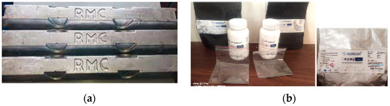 (a) Aluminium LM6 Ingots. (b) Boron carbide, graphite powders and wetting agent.