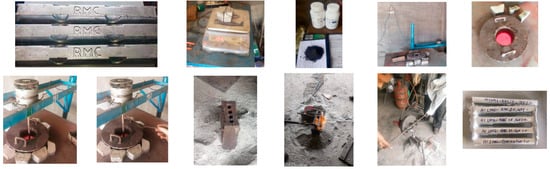 In the experimental procedure, the electric resistance furnace was switched on and heated to a specific temperature of 750 °C. By preheating the graphite crucible to a relatively low temperature of 60–70 °C, any moisture or volatile substances can be evaporated and eliminated from the crucible’s interior. Both the base metal alloy (aluminum LM6) and the reinforcement materials (such as boron carbide and graphite) were weighed according to the desired composition for casting. Preheating the base metal alloy and reinforcement materials within the temperature range of 350 °C–450 °C allows for improved mixing, enhanced wetting, and reduced thermal shock, contributing to the successful fabrication of the composite material. The pre-weighed aluminum alloy LM6 was placed into the crucible and heated up to a temperature of 750 °C. This temperature is above the melting point of the aluminum alloy, which is approximately 660 °C [17]. A degasifier tablet containing hexa-chloro-ethane (HCE) was added to the molten metal, and it was held immersed for a few seconds until all the gases were removed. A stirring action is performed to disperse the reinforcement particulates uniformly throughout the molten metal matrix, resulting in a homogeneous distribution of the reinforcement particles within the melt. The mold boxes were heated using a blowtorch until they lost all moisture. This step is carried out to remove any moisture or residual moisture that might be present in the mold boxes. The pre-weighed and pre-heated reinforcement materials, such as boron carbide or graphite, were added to the molten metal in the furnace using a graphite spoon. Simultaneously, the molten metal was stirred at a stirring speed of 550 rpm to create a vortex for approximately 5 min. The wettability agent, potassium hexafluoro titanate (K2TiF6), was introduced into the molten metal gradually. The amount of additive used was 25% of the weight of the reinforcement quantity.