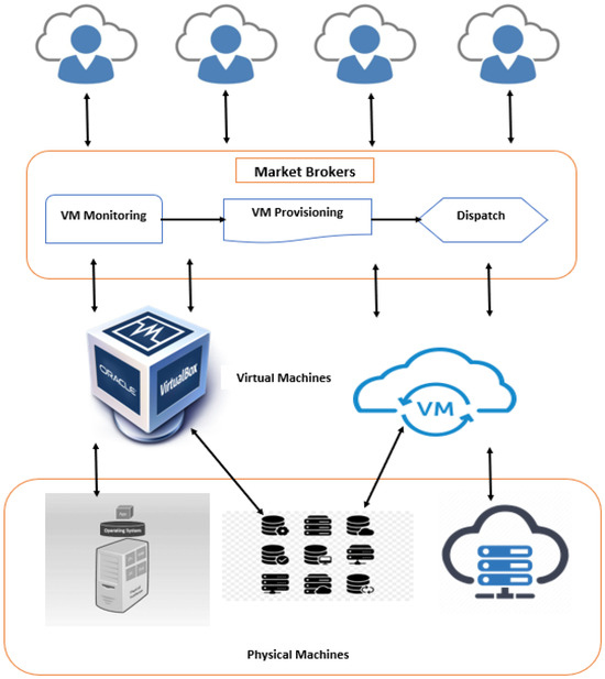 End clients have important viewpoints that help deal with thinking processes relevant to the assistance provided by cloud servers [5]. The administrative device is known as a server. Virtual or unique servers are the available options. The assets provided by these systems enable typical programming to be performed well [6,7]. To the exact second, assets are noted and estimated. For CSPs, clients, and server farms, the system provides a detailed view of assets [8,9,10]. Improving the way these systems serve clients is one of the main reasons to use an administration model. Client accounts are accessible in a characterized cloud, which is typically designed for a single individual, association, or venture. All clients, whether they pay or not, are allowed to be involved in business using the public cloud. Businesses like Amazon, Hewlett-Packard, IBM, Google, Microsoft, Rackspace, and Salesforce.com provide public hazes [5,6]. The selection of crossbreeds consolidates the two types mentioned above. Under a particular SLA, a portion of businesses are open, while others are closed. Various associations, including Microsoft, Google, and Salesforce.com, perform blend figuring. Social class enlistment can be used for a client’s businesses in all cases. These services may be unavailable to those with certain affiliations or members of the untouchable caste, and they may be available on or off certain premises. Board resources are a fundamental component of any cloud stage; wasteful resource use on the part of executives can have an adverse effect on practices and costs, as well as on the general value of the system, making it restrictively costly or unusable because of poor showing [11,12,13].