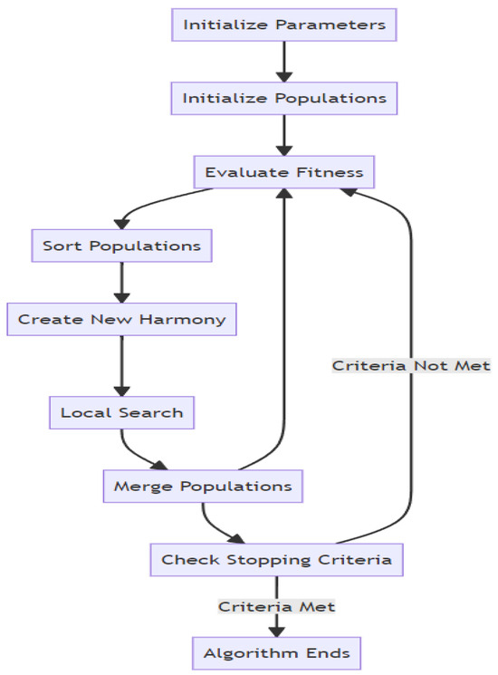 Simplified flowchart on the steps depicting the Multi-population Harmony Search Algorithm.